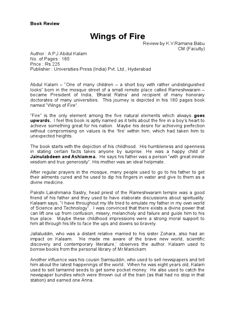 Book Review On Wings Of Fire