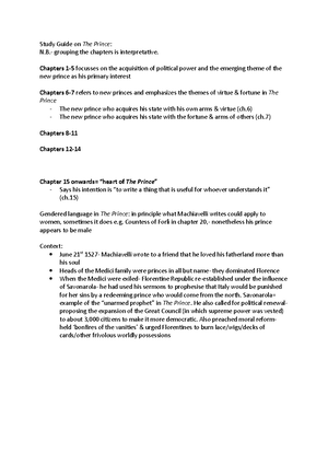 Study Guide On The Prince Grouping The Chapters Is Interpretative Chapters 1 5 Focusses On The Studocu